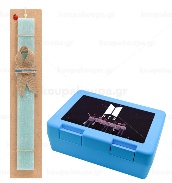 BTS, Easter Set, children's snack container BLUE & Easter aromatic flat candle (30cm) (TURQUOISE)