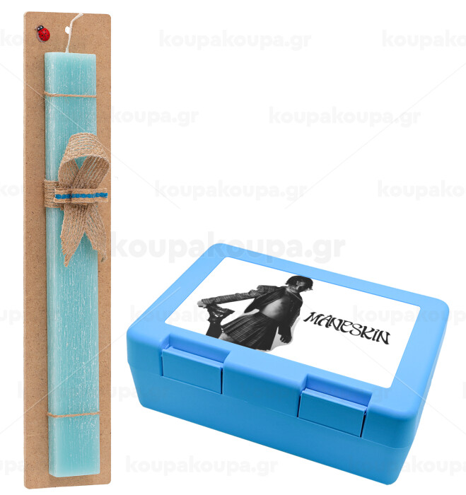 Maneskin Damiano David, Easter Set, children's snack container BLUE & Easter aromatic flat candle (30cm) (TURQUOISE)