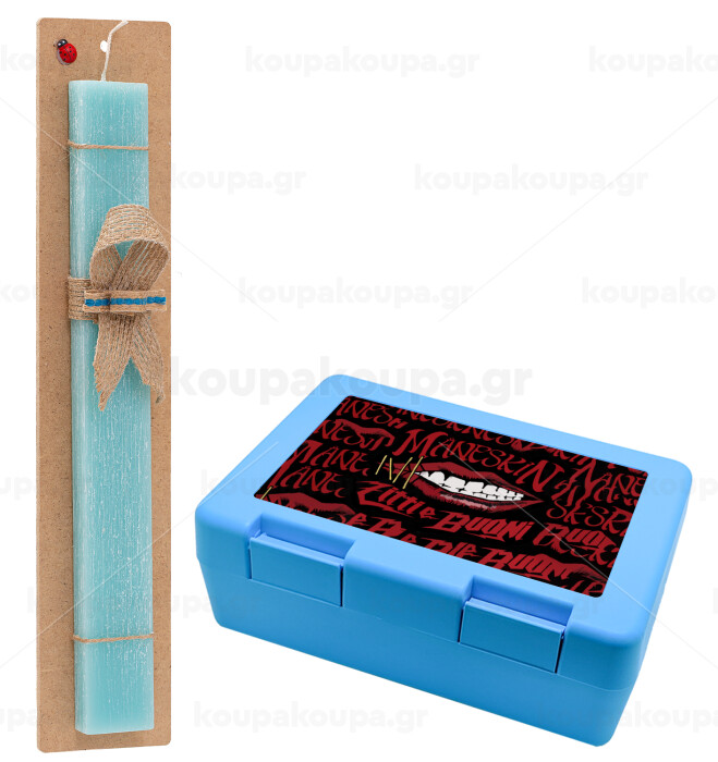 Maneskin lips, Easter Set, children's snack container BLUE & Easter aromatic flat candle (30cm) (TURQUOISE)