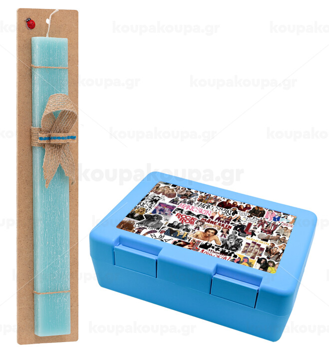 Maneskin stickers, Easter Set, children's snack container BLUE & Easter aromatic flat candle (30cm) (TURQUOISE)
