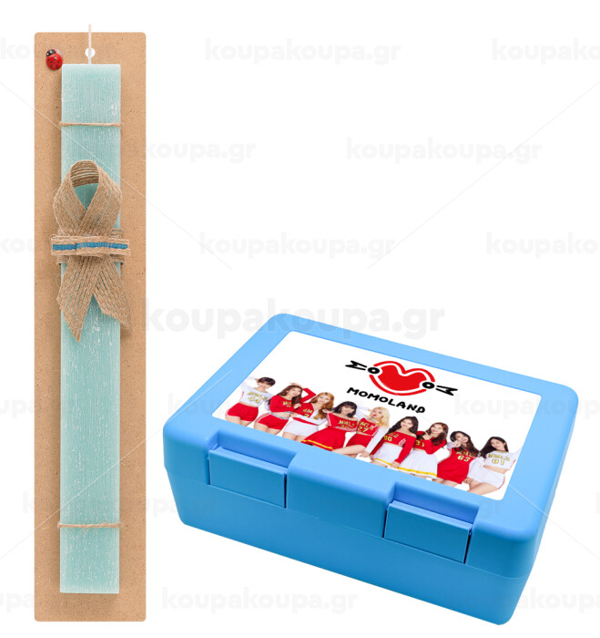 Momoland, Easter Set, children's snack container BLUE & Easter aromatic flat candle (30cm) (TURQUOISE)