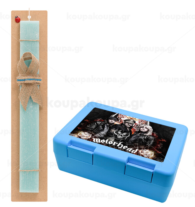 motorhead, Easter Set, children's snack container BLUE & Easter aromatic flat candle (30cm) (TURQUOISE)