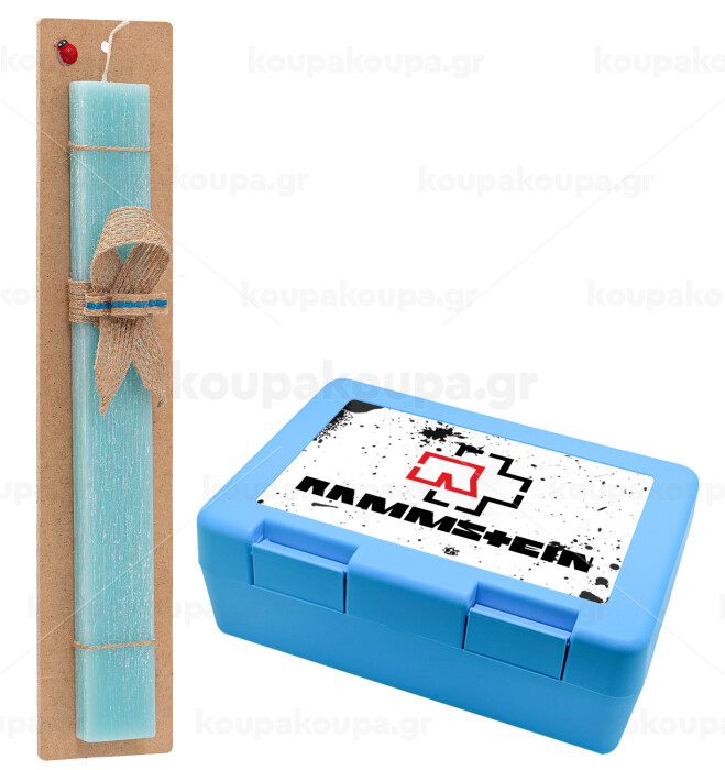 Rammstein, Easter Set, children's snack container BLUE & Easter aromatic flat candle (30cm) (TURQUOISE)
