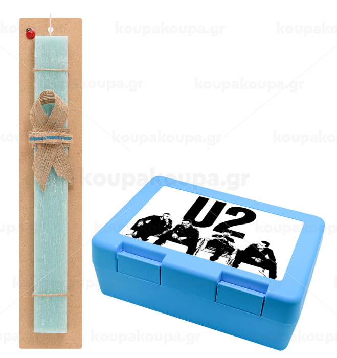 U2 , Easter Set, children's snack container BLUE & Easter aromatic flat candle (30cm) (TURQUOISE)