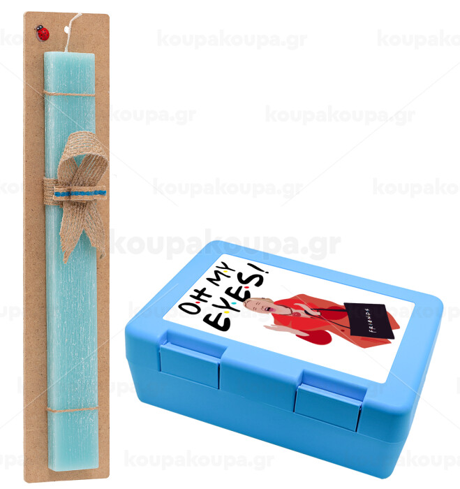 Friends,. oh my eyes Phoebe, Easter Set, children's snack container BLUE & Easter aromatic flat candle (30cm) (TURQUOISE)