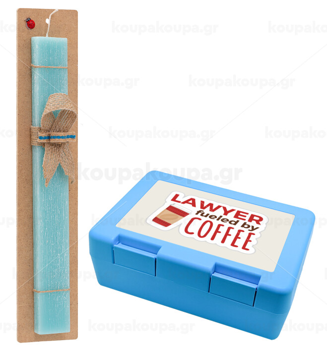 Lawyer fueled by coffee, Easter Set, children's snack container BLUE & Easter aromatic flat candle (30cm) (TURQUOISE)
