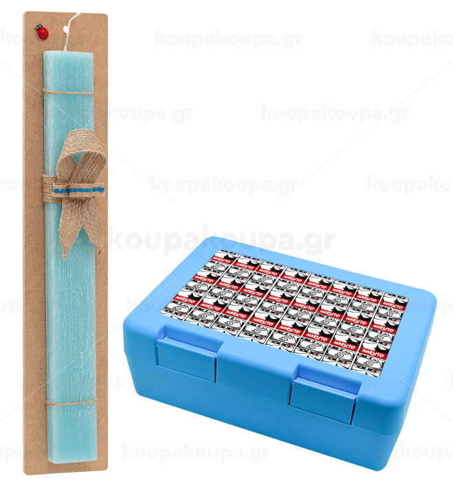 Naruto anime, Easter Set, children's snack container BLUE & Easter aromatic flat candle (30cm) (TURQUOISE)