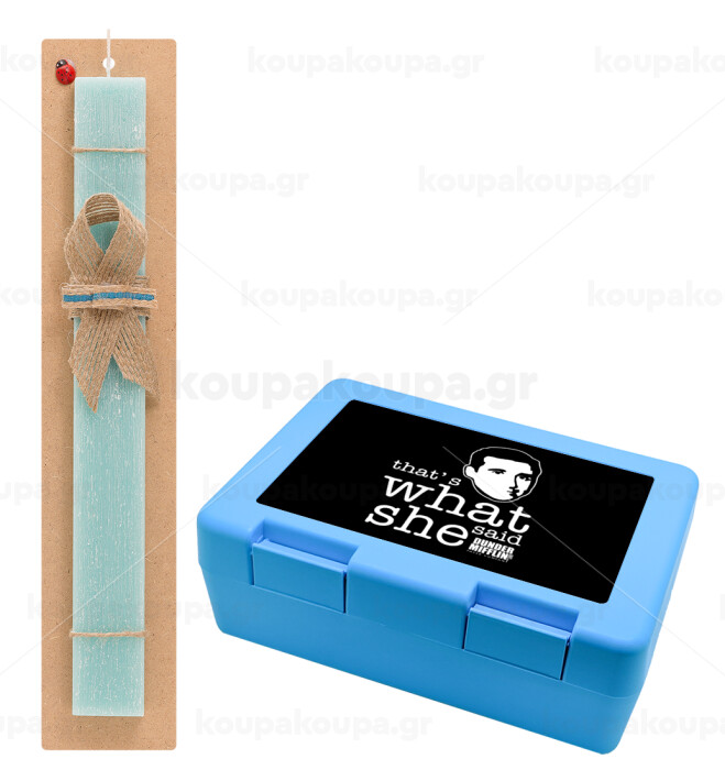 The office Michael That's what she said, Easter Set, children's snack container BLUE & Easter aromatic flat candle (30cm) (TURQUOISE)