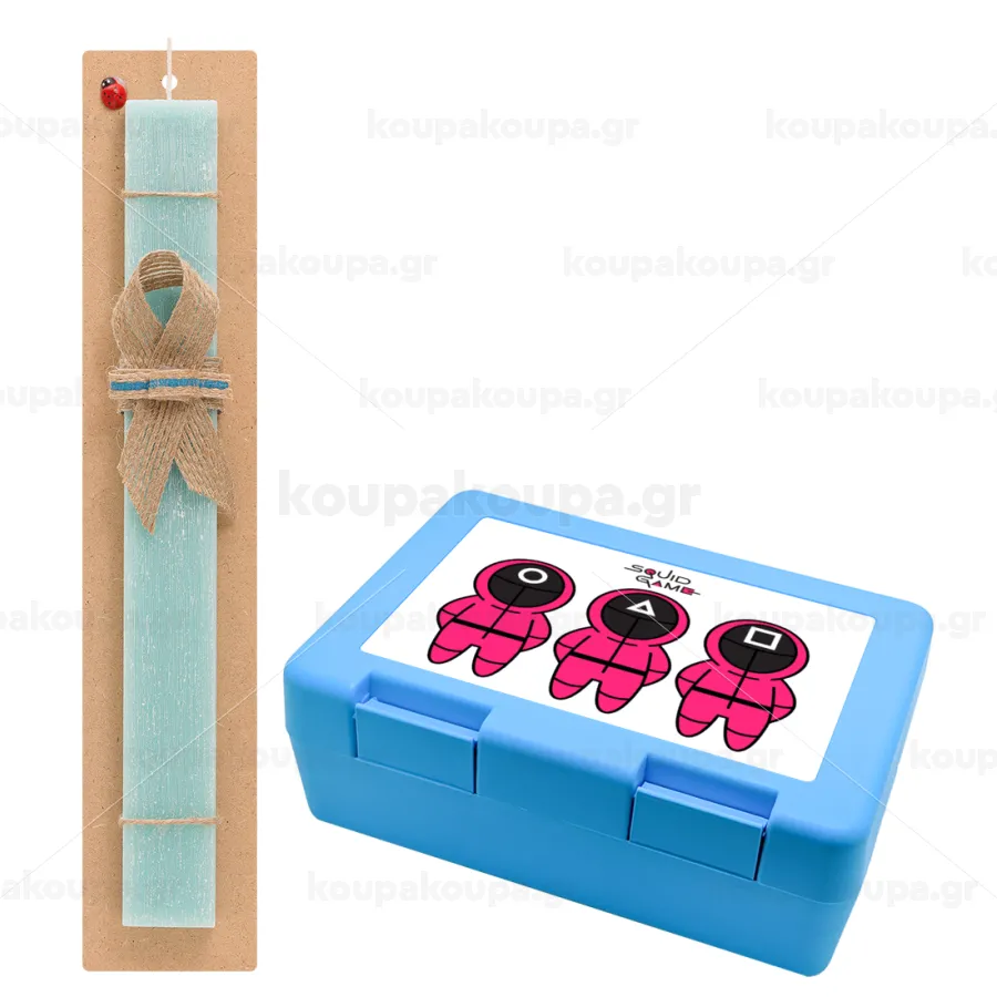 The squid game characters, Easter Set, children's snack container BLUE & Easter aromatic flat candle (30cm) (TURQUOISE)