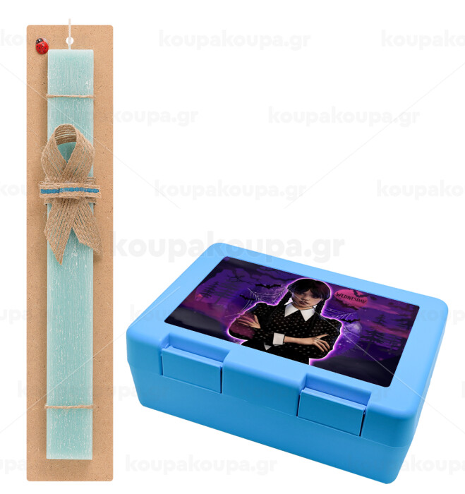 Wednesday moonlight, Easter Set, children's snack container BLUE & Easter aromatic flat candle (30cm) (TURQUOISE)