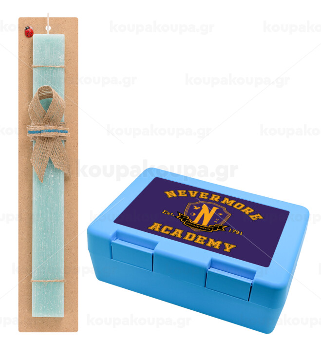 Wednesday Nevermore Academy University, Easter Set, children's snack container BLUE & Easter aromatic flat candle (30cm) (TURQUOISE)
