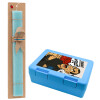 Μπαρτζό, Ποιος? Αυτός!!! 1-0, Easter Set, children's snack container BLUE & Easter aromatic flat candle (30cm) (TURQUOISE)