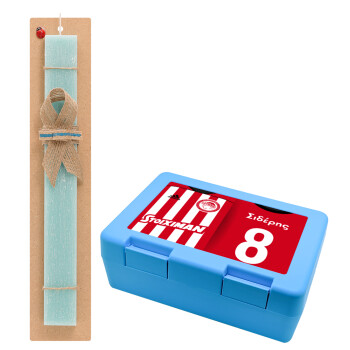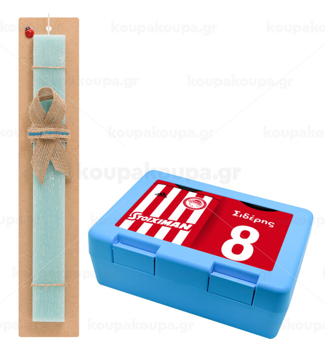 Ολυμπιακός εμφάνιση, Easter Set, children's snack container BLUE & Easter aromatic flat candle (30cm) (TURQUOISE)