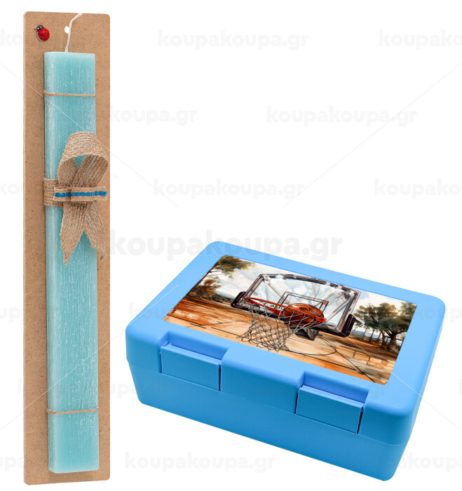 Basketball, Easter Set, children's snack container BLUE & Easter aromatic flat candle (30cm) (TURQUOISE)