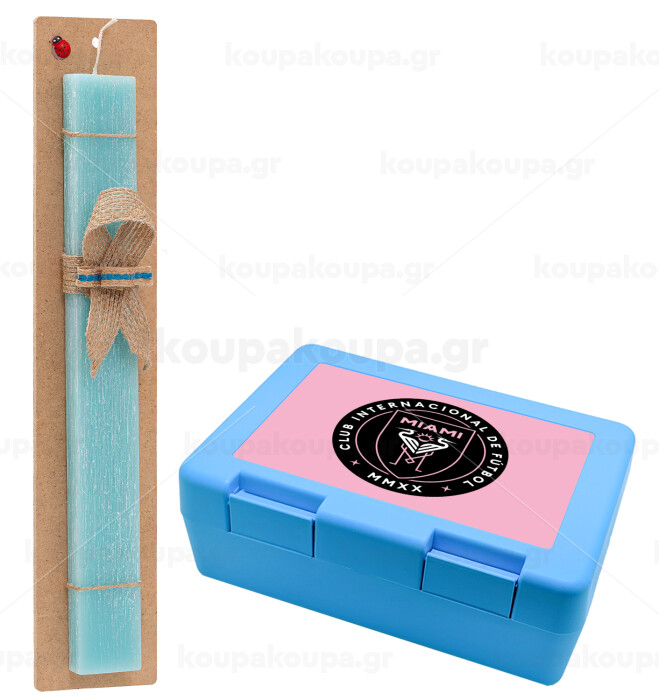 Inter Miami CF, Easter Set, children's snack container BLUE & Easter aromatic flat candle (30cm) (TURQUOISE)
