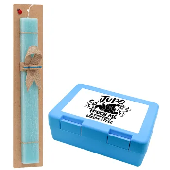 Judo Touch Me And Your First Lesson Is Free, Easter Set, children's snack container BLUE & Easter aromatic flat candle (30cm) (TURQUOISE)
