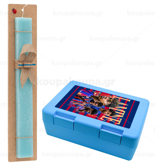 lamine yamal FCB, Easter Set, children's snack container BLUE & Easter aromatic flat candle (30cm) (TURQUOISE)