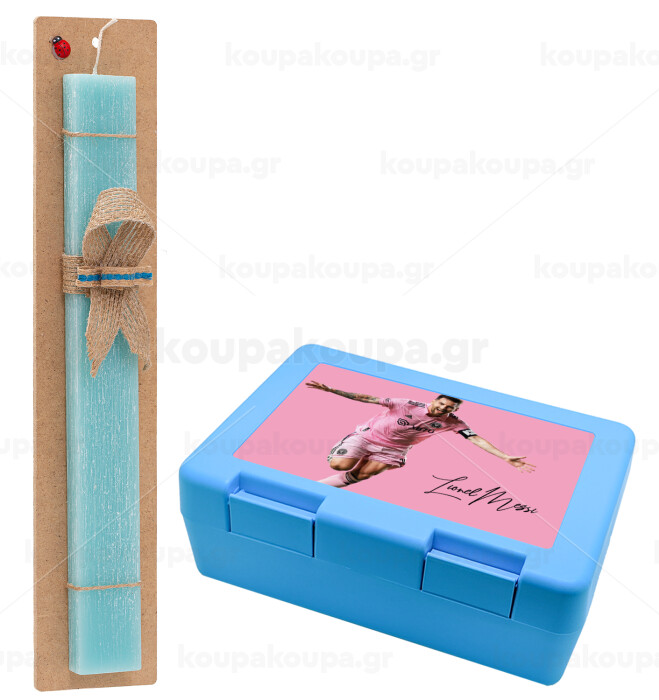 Lionel Messi inter miami jersey, Easter Set, children's snack container BLUE & Easter aromatic flat candle (30cm) (TURQUOISE)