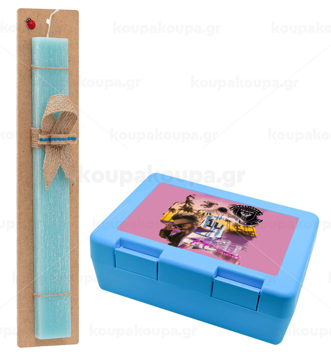 Lionel Messi Miami, Easter Set, children's snack container BLUE & Easter aromatic flat candle (30cm) (TURQUOISE)