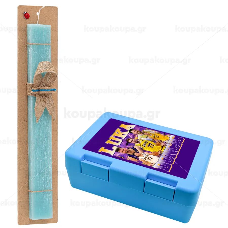 Luka Doncic Basketball , Easter Set, children's snack container BLUE & Easter aromatic flat candle (30cm) (TURQUOISE)