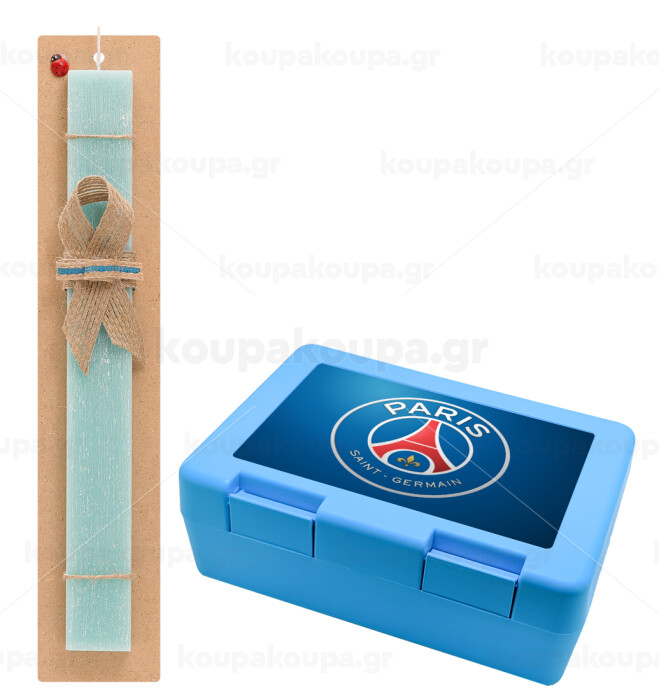 Paris Saint-Germain F.C., Easter Set, children's snack container BLUE & Easter aromatic flat candle (30cm) (TURQUOISE)