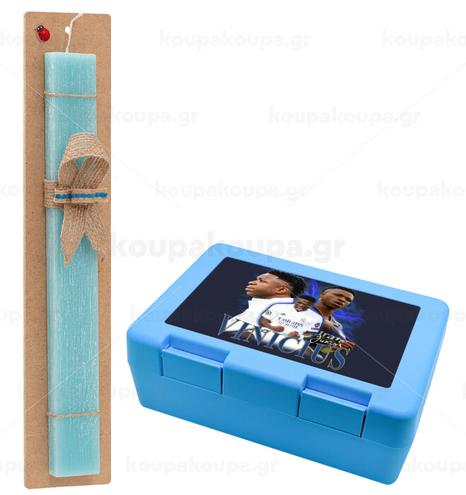 Vinicius Junior, Easter Set, children's snack container BLUE & Easter aromatic flat candle (30cm) (TURQUOISE)