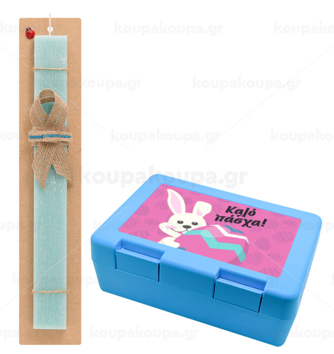 Καλό πάσχα, Easter Set, children's snack container BLUE & Easter aromatic flat candle (30cm) (TURQUOISE)