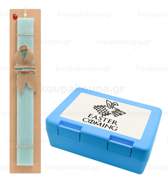 Easter is coming (GOT), Easter Set, children's snack container BLUE & Easter aromatic flat candle (30cm) (TURQUOISE)