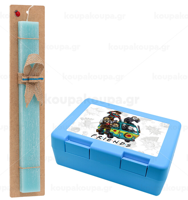 Halloween Friends Scooby Doo, Easter Set, children's snack container BLUE & Easter aromatic flat candle (30cm) (TURQUOISE)