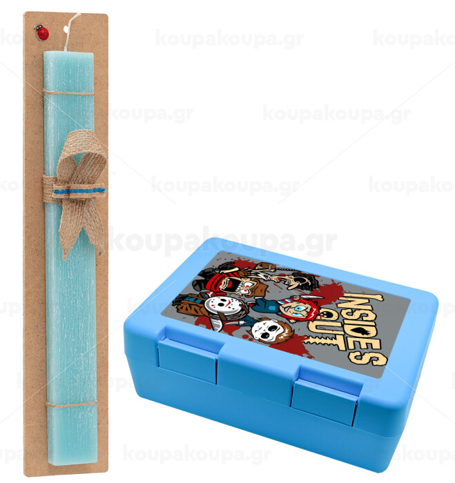 Halloween Inside out, Easter Set, children's snack container BLUE & Easter aromatic flat candle (30cm) (TURQUOISE)