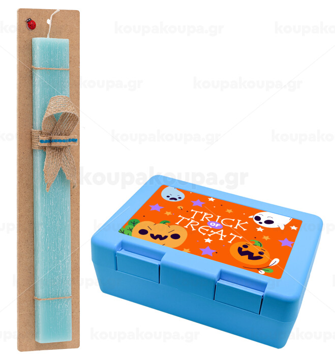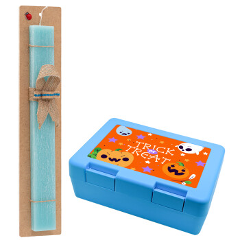 Halloween trick or treat Ghosts and Pumpkins, Easter Set, children's snack container BLUE & Easter aromatic flat candle (30cm) (TURQUOISE)