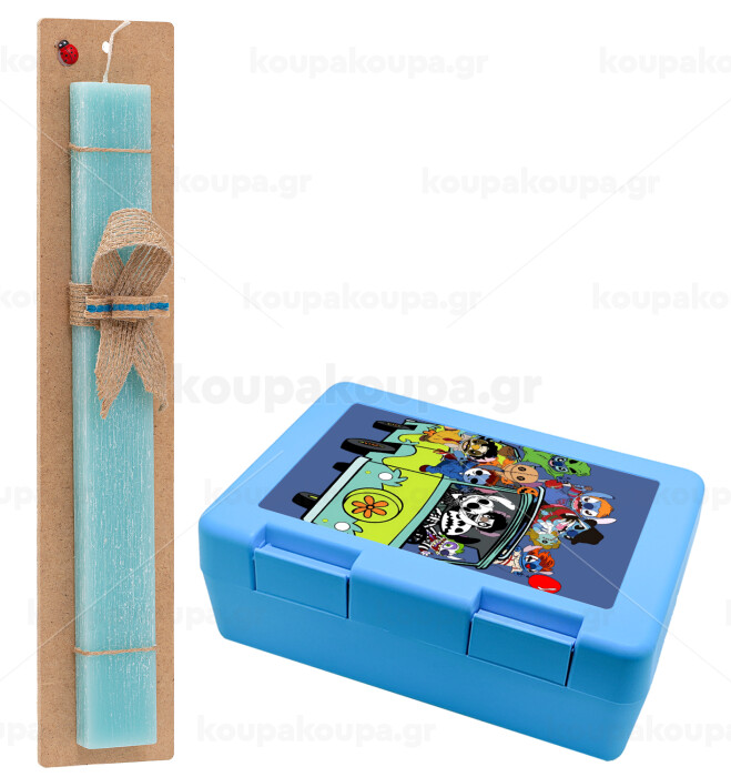 Stitch Halloween scooby car, Easter Set, children's snack container BLUE & Easter aromatic flat candle (30cm) (TURQUOISE)