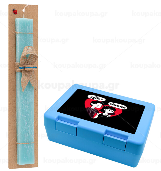 Τι έχεις? Τίποτα!, Easter Set, children's snack container BLUE & Easter aromatic flat candle (30cm) (TURQUOISE)