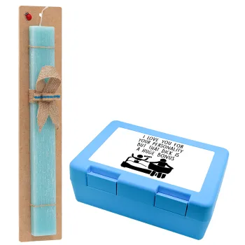 I Love You for Your Personality But that D... Is a Huge Bonus , Easter Set, children's snack container BLUE & Easter aromatic flat candle (30cm) (TURQUOISE)