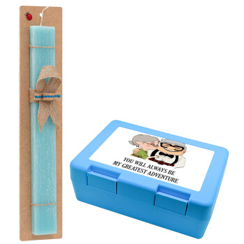 UP, YOU WILL ALWAYS BE MY GREATEST ADVENTURE, Easter Set, children's snack container BLUE & Easter aromatic flat candle (30cm) (TURQUOISE)