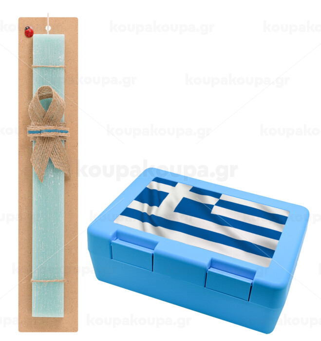 GREEK Flag, Easter Set, children's snack container BLUE & Easter aromatic flat candle (30cm) (TURQUOISE)