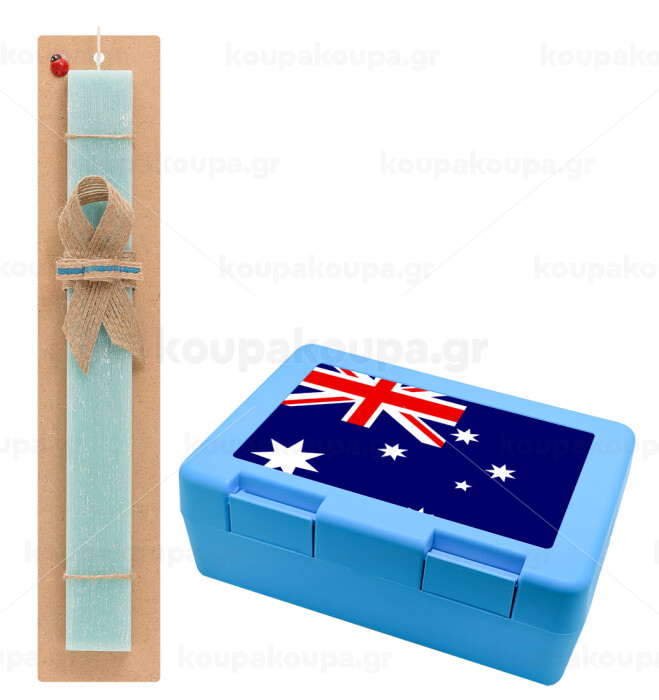 Australia flag, Easter Set, children's snack container BLUE & Easter aromatic flat candle (30cm) (TURQUOISE)