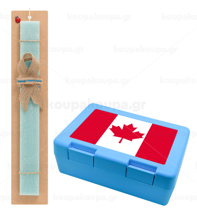 Canada flag, Easter Set, children's snack container BLUE & Easter aromatic flat candle (30cm) (TURQUOISE)