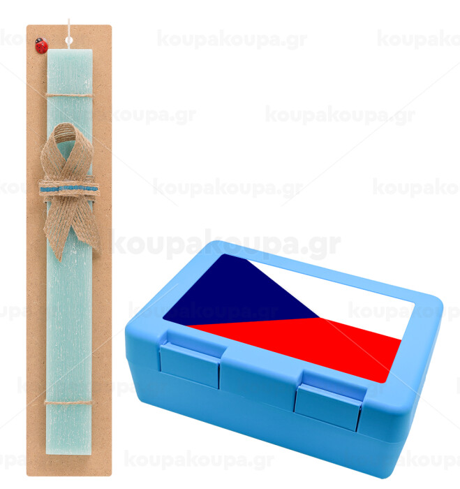 Czechia flag, Easter Set, children's snack container BLUE & Easter aromatic flat candle (30cm) (TURQUOISE)