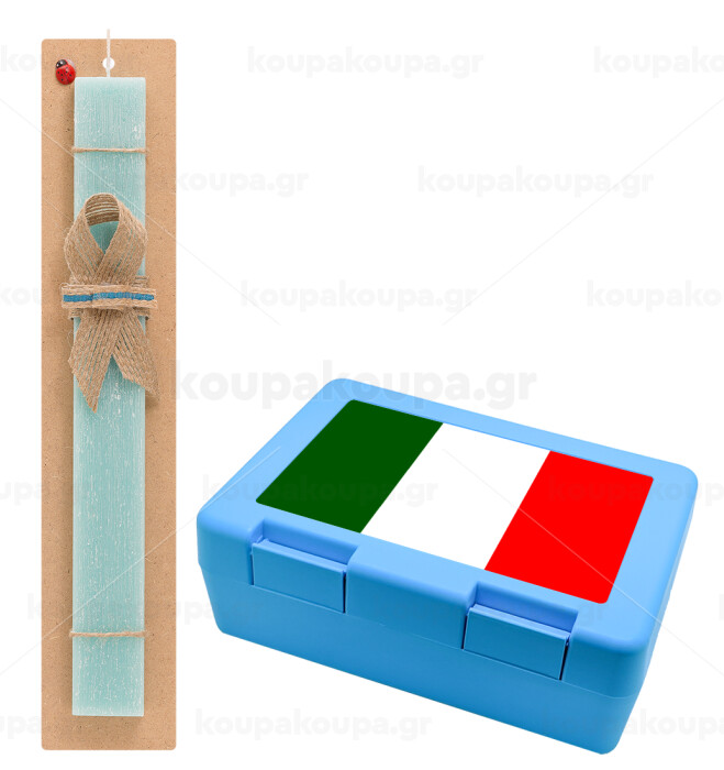 Italy flag, Easter Set, children's snack container BLUE & Easter aromatic flat candle (30cm) (TURQUOISE)