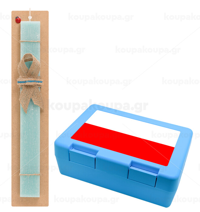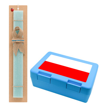 Poland flag, Easter Set, children's snack container BLUE & Easter aromatic flat candle (30cm) (TURQUOISE)