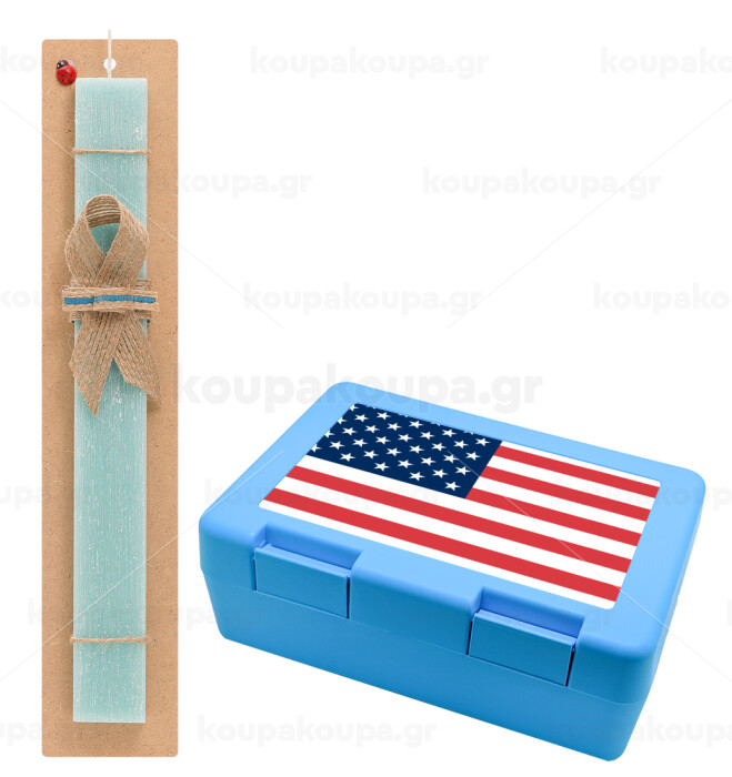 USA flag, Easter Set, children's snack container BLUE & Easter aromatic flat candle (30cm) (TURQUOISE)