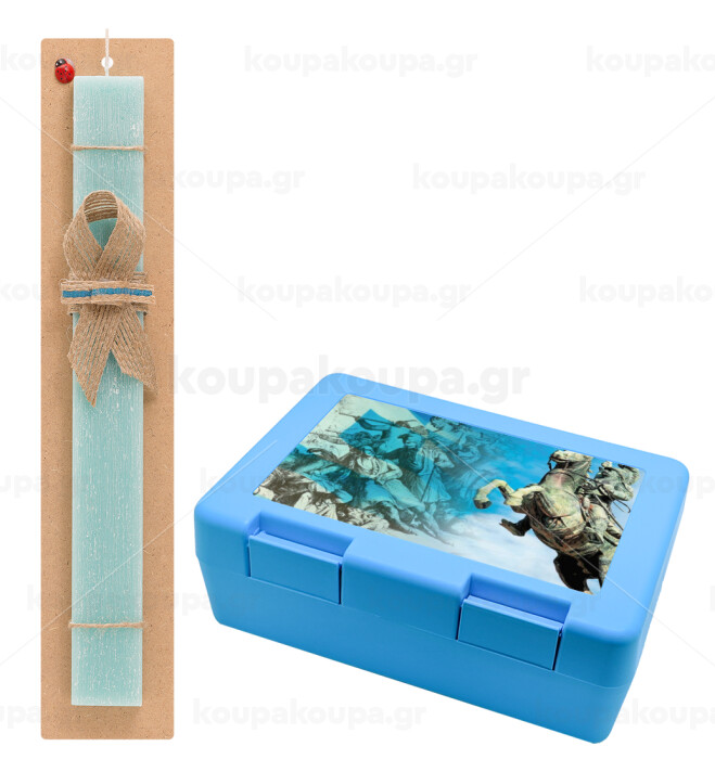 25η Μαρτίου 1821, Easter Set, children's snack container BLUE & Easter aromatic flat candle (30cm) (TURQUOISE)