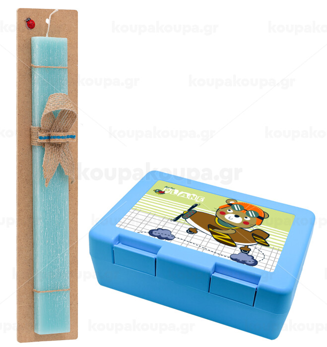 Kids Plane, Easter Set, children's snack container BLUE & Easter aromatic flat candle (30cm) (TURQUOISE)
