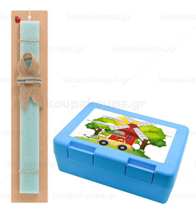 Toy car, Easter Set, children's snack container BLUE & Easter aromatic flat candle (30cm) (TURQUOISE)