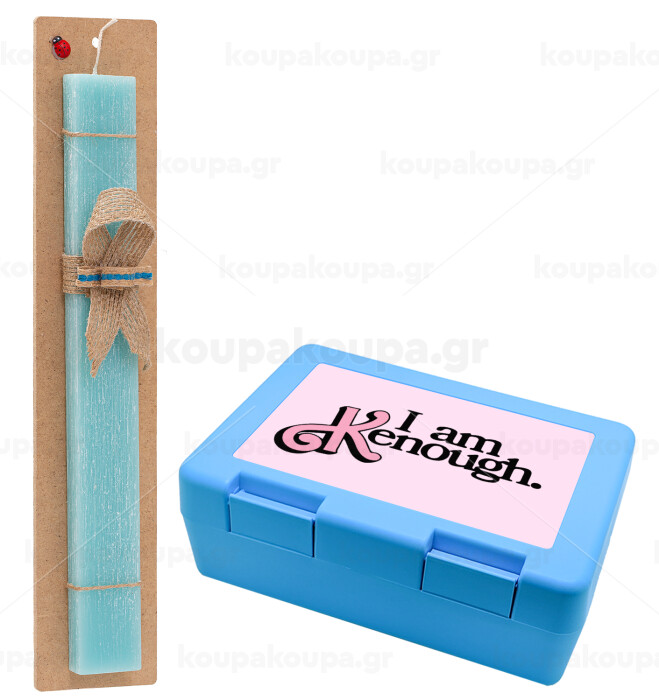 Barbie, i am Kenough, Easter Set, children's snack container BLUE & Easter aromatic flat candle (30cm) (TURQUOISE)