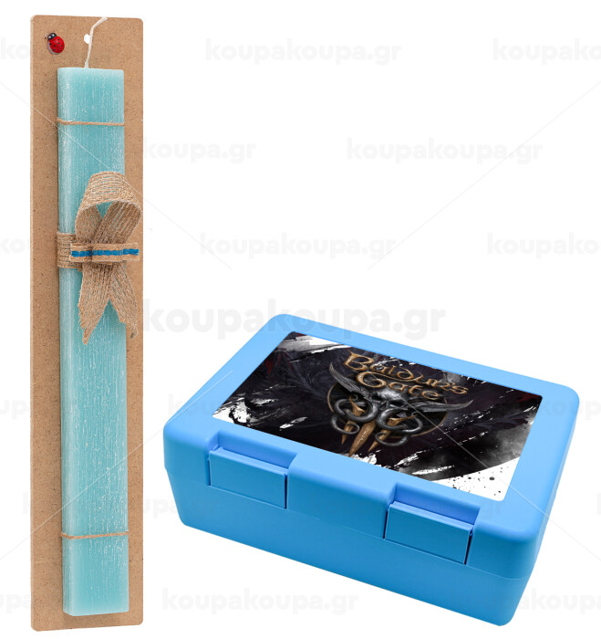 Baldur's Gate, Easter Set, children's snack container BLUE & Easter aromatic flat candle (30cm) (TURQUOISE)