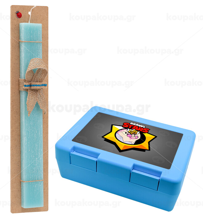Brawl Stars Byron, Easter Set, children's snack container BLUE & Easter aromatic flat candle (30cm) (TURQUOISE)