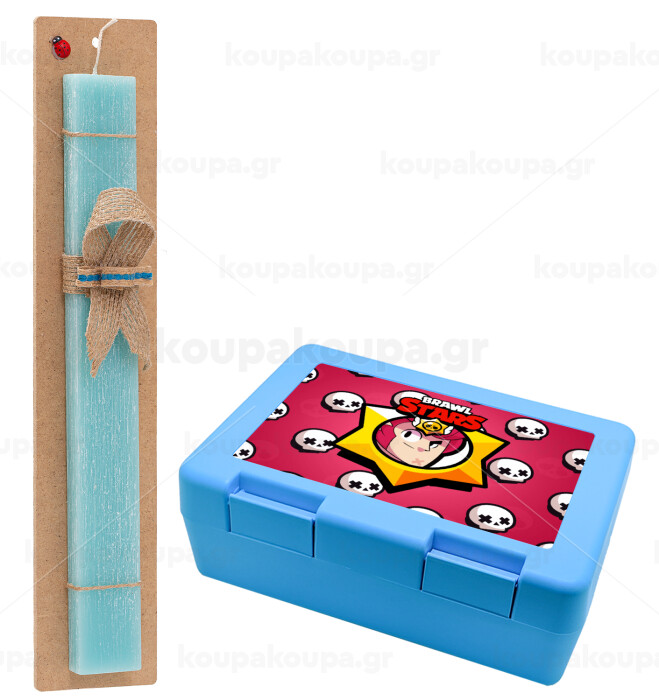 Brawl Stars Colt, Easter Set, children's snack container BLUE & Easter aromatic flat candle (30cm) (TURQUOISE)