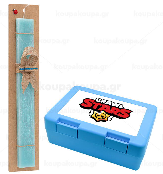 Brawl Stars, Easter Set, children's snack container BLUE & Easter aromatic flat candle (30cm) (TURQUOISE)